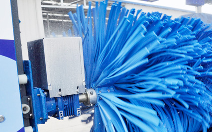 進口意大利塑玻絲輪刷,根據(jù)光電開關感應判斷車身位置,輪刷啟動至輪轂位置,開始清洗,正反旋轉刷洗輪轂,電腦洗車機全程電腦全自動控制輪刷伸縮。